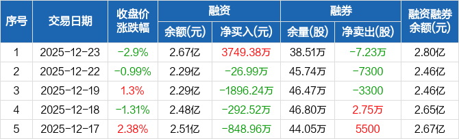 巨星科技:融资净买入3749.38万元,融资余额2.67亿元(12-23)