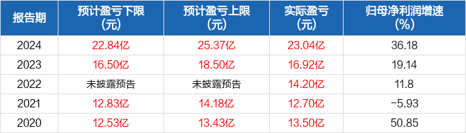 近5年归母净利润预测情况