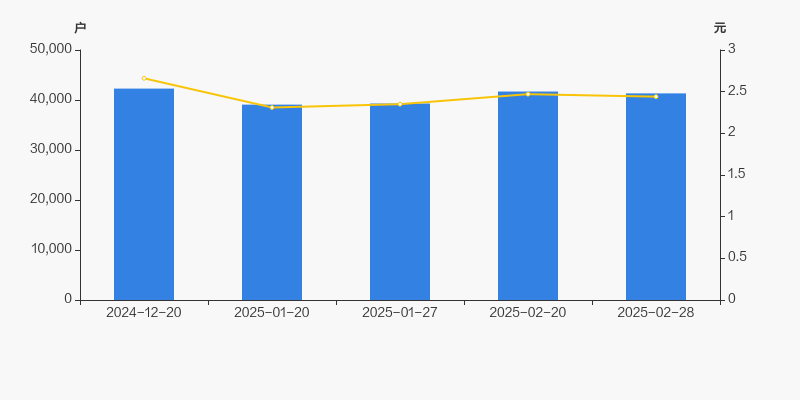 2024年12月20日至今,公司股东户数有所下降,区间跌幅为2.27%。2024年12月20日至2025年2月28日区间股价下降8.27%。