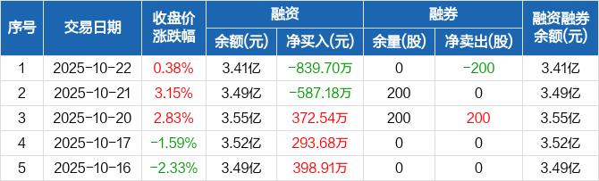 中南文化:融资净偿还839.7万元,融资余额3.41亿元(10-22)
