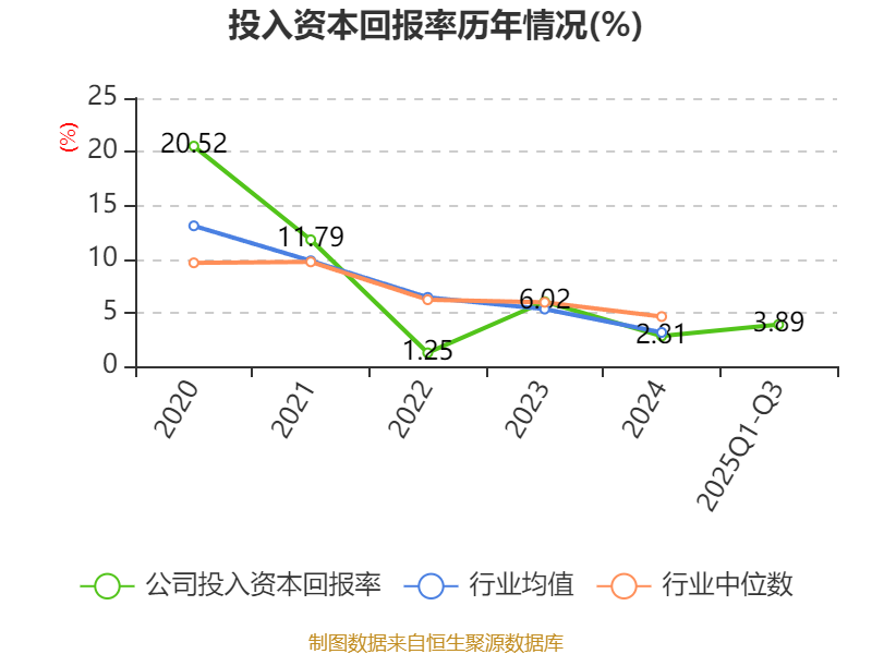 盈利能力方面, 2025年前三季度公司加权平均净资产收益率为3.72%,同比上升2.08个百分点。公司2025年前三季度投入资本回报率为3.89%,较上年同期上升2.06个百分点。
