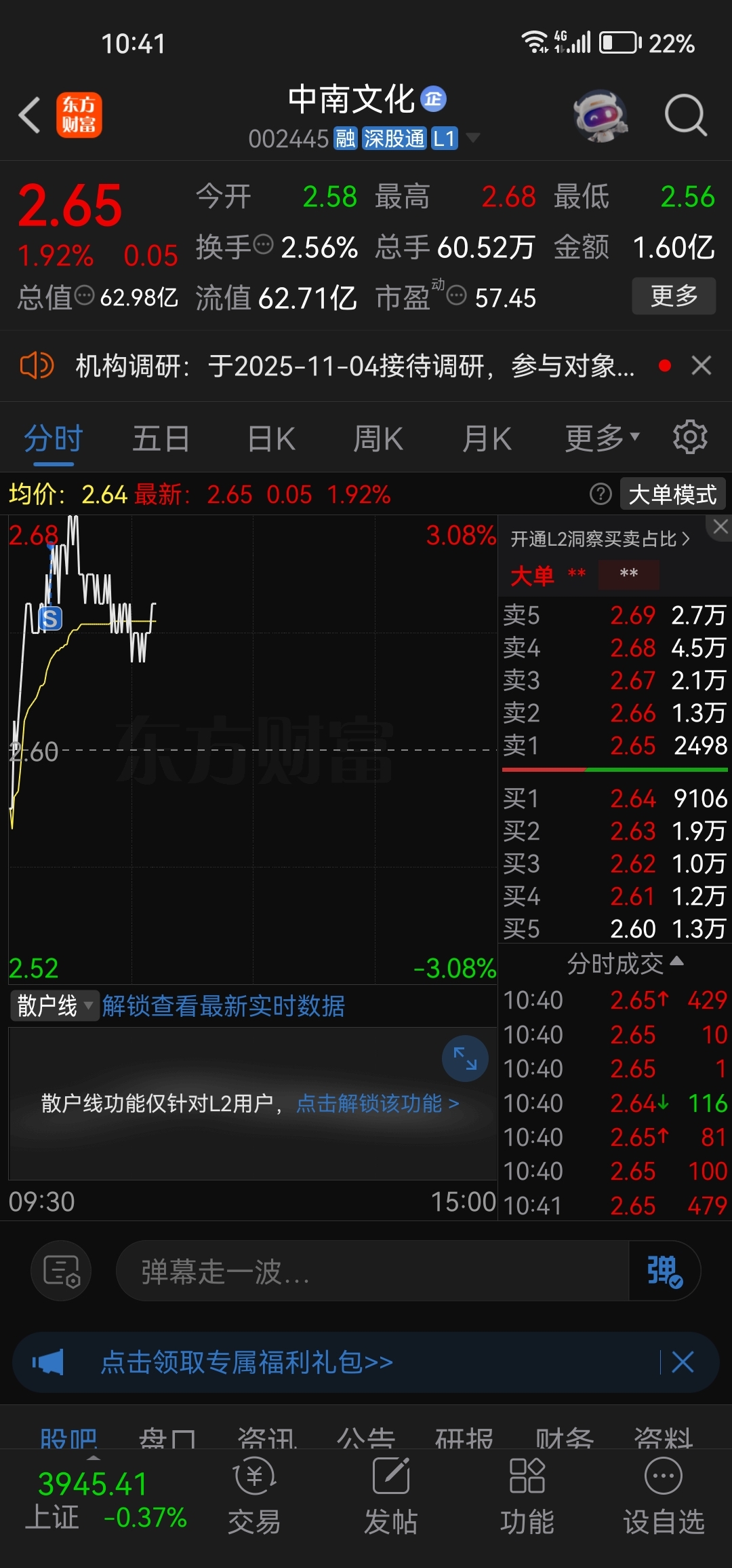 $中南文化(SZ002445)$ 早盘拉高没量卖出感觉要调整了,跌下来再说