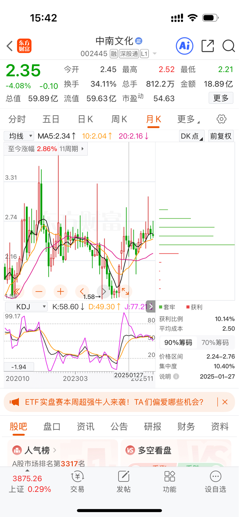 $中南文化(SZ002445)$ 一年涨了2.86 %,太厉害了,真棒,,