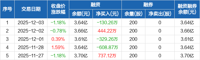 中南文化:融资净偿还130.26万元,融资余额3.64亿元(12-03)
