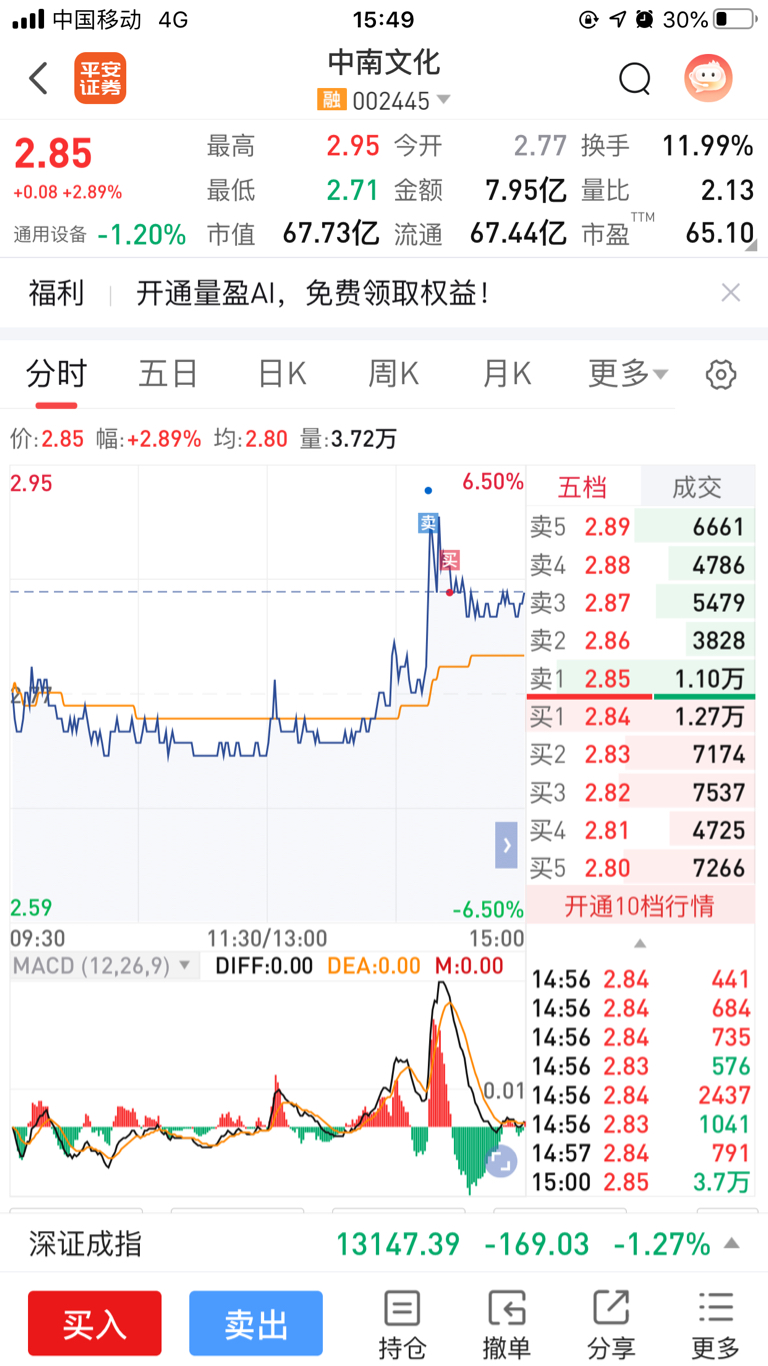 中南文化:2元国资!毛利润尚可!业绩增长!耐心等待着!6个月内目标价5元不变!实在手痒小仓位做点高抛低吸!加油加油!股市有风险投资需谨慎!