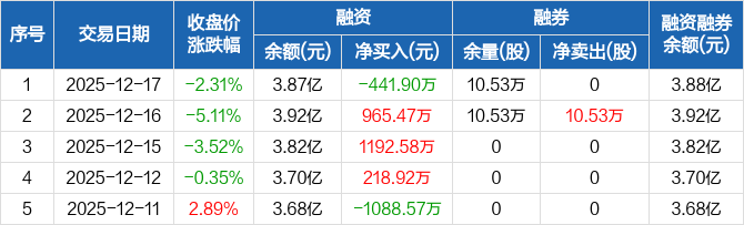 中南文化:融资净偿还441.9万元,融资余额3.87亿元(12-17)