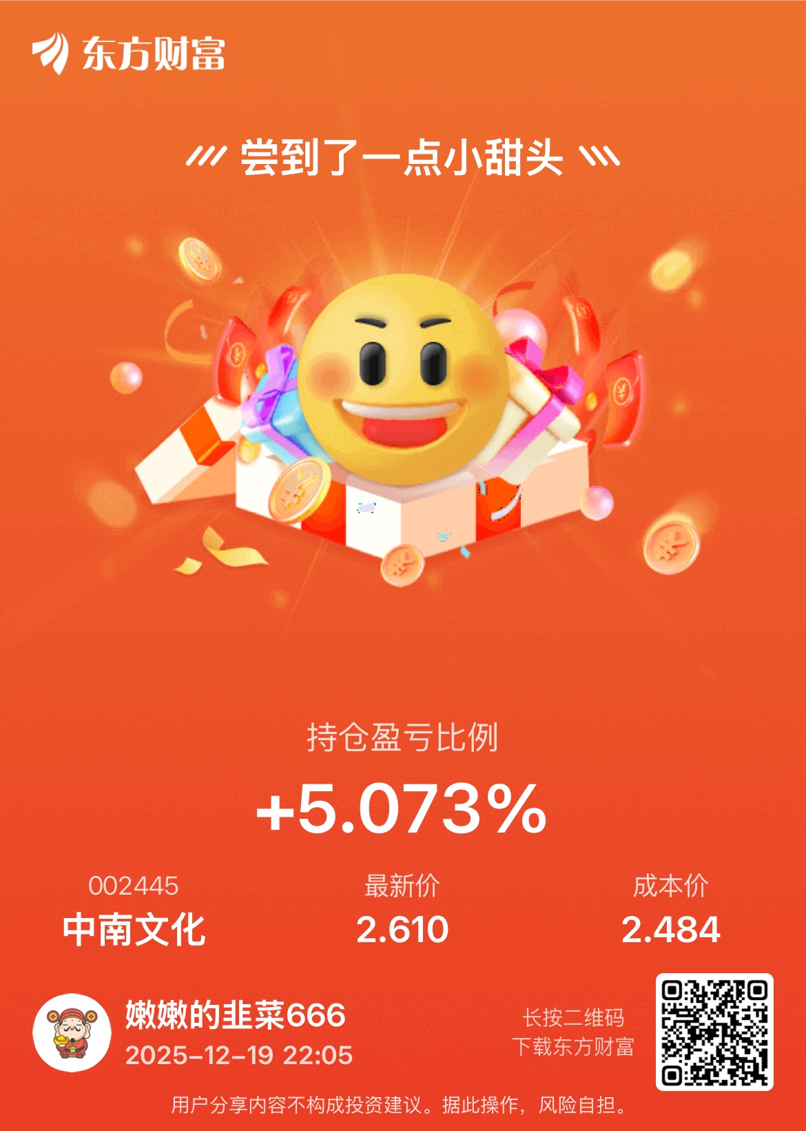 $中南文化(SZ002445)$ 一千手拿了一年多跟存银行一样利息,感觉再过几个月就会迎来新的春天,太难了
