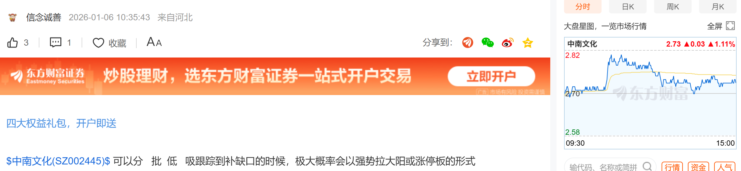 温馨提示: 1.根据《证券法》规定,禁止编造、传播虚假信息或者误导性信息,扰乱证券市场;2.用户在本社区发表的所有资料、言论等仅代表个人观点,与本网站立场无关,不对您构成任何投资建议。用户应基于自己的独立判断,自行决定证券投资并承担相应风险。《东方财富社区管理规定》