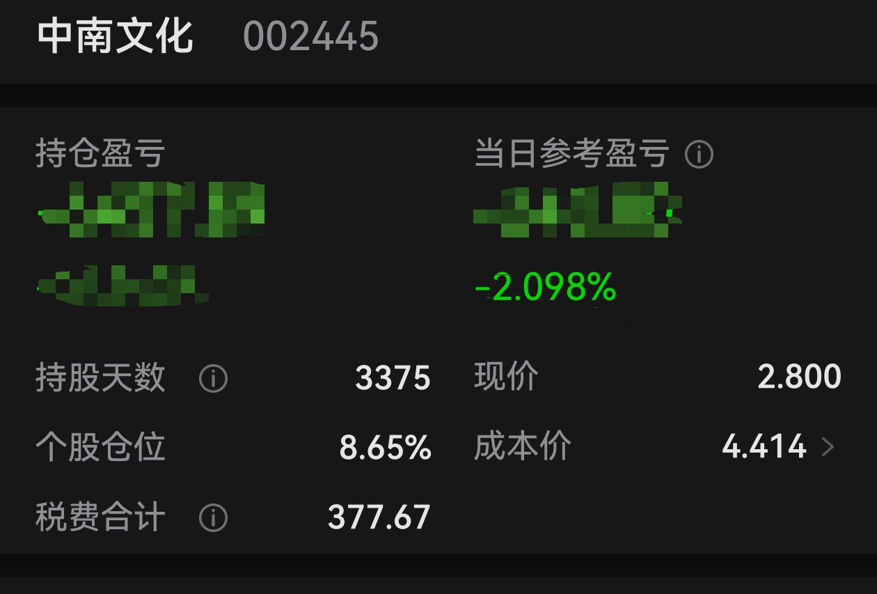 $中南文化(SZ002445)$ 套了十年的还在,能涨吗?我要是割了,必然大涨,除非退市或者回本,我是永远不会卖的,垃圾股我也不会加仓