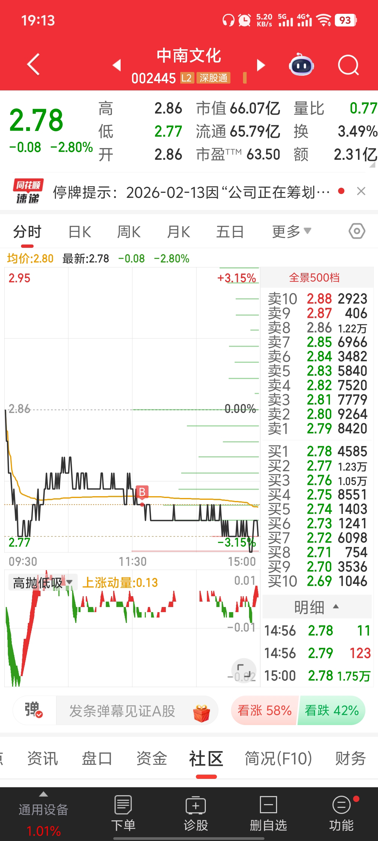 $中南文化(SZ002445)$ 今天刚满仓就停牌了