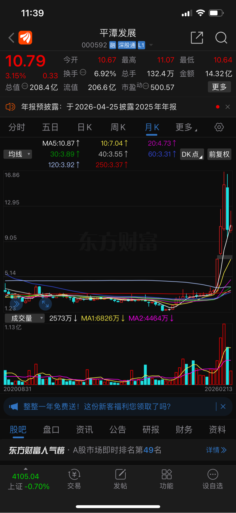 能不能上10元,看看平潭发展的月K线几乎和中南一模一样。低位起来至少4倍,不到1
