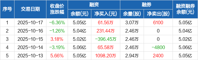 盛路通信:融资净买入61.56万元,融资余额5.05亿元(10-17)