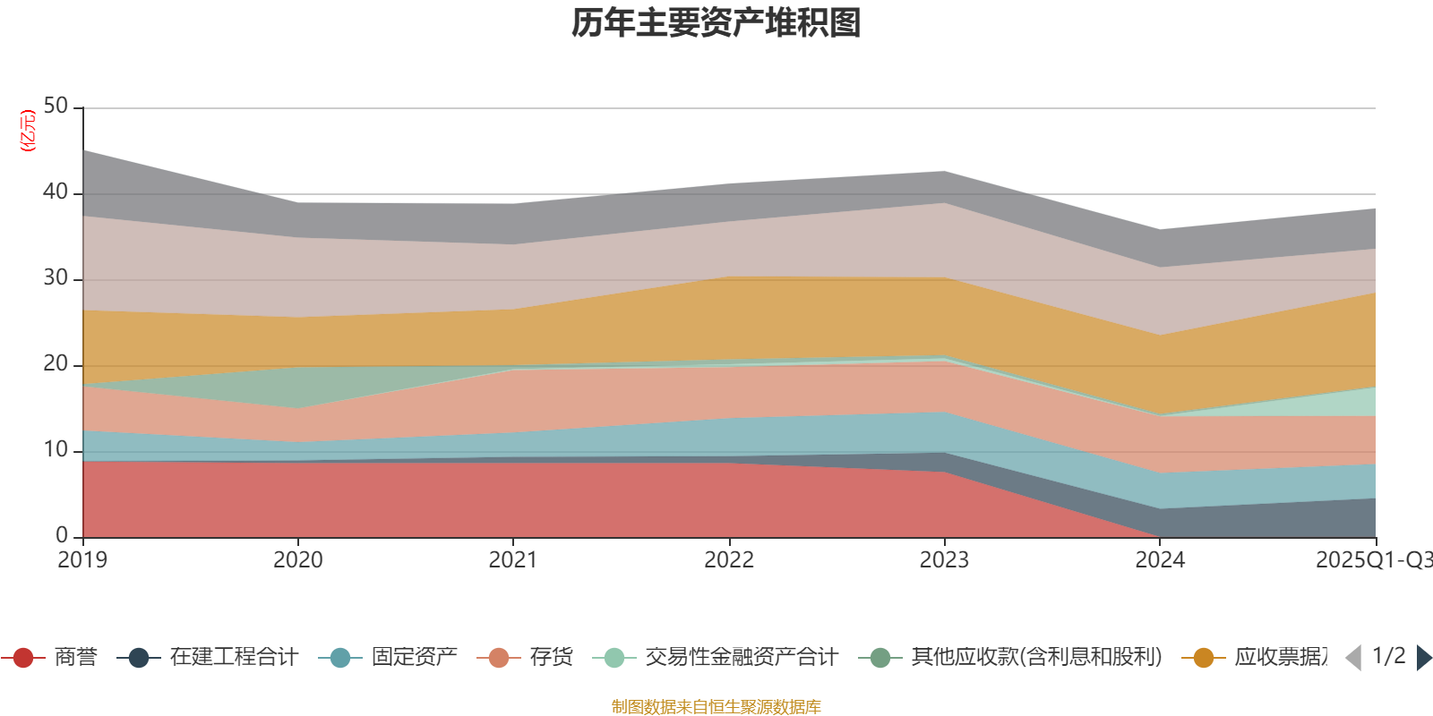 资产重大变化方面,截至2025年三季度末,公司货币资金较上年末减少35.28%,占公司总资产比重下降8.71个百分点;交易性金融资产合计较上年末增加7260.34%,占公司总资产比重上升8.51个百分点;存货较上年末减少15.19%,占公司总资产比重下降3.79个百分点;应收票据及应收账款较上年末增加19.23%,占公司总资产比重上升2.97个百分点。
