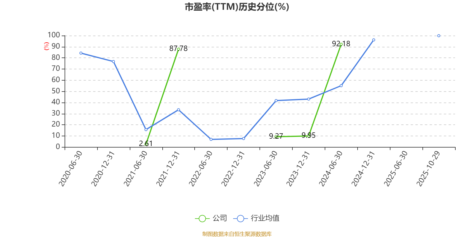 市盈率、市净率为负时,不显示当期分位数,会导致折线图中断。