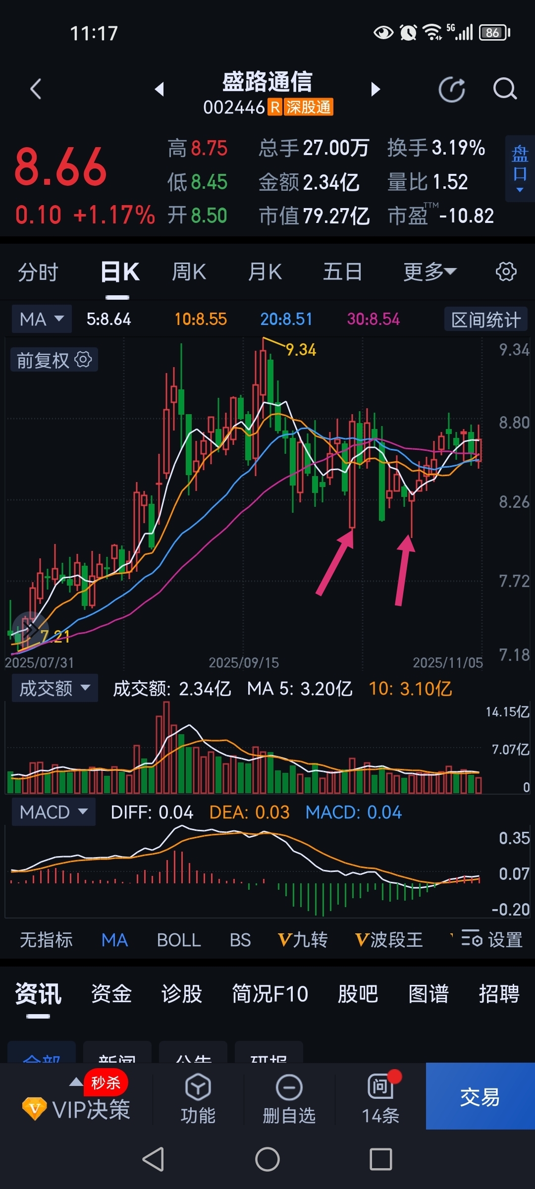 $盛路通信(SZ002446)$ 这两个点位都形成双底了,还怕什么?只需要耐心就是了。