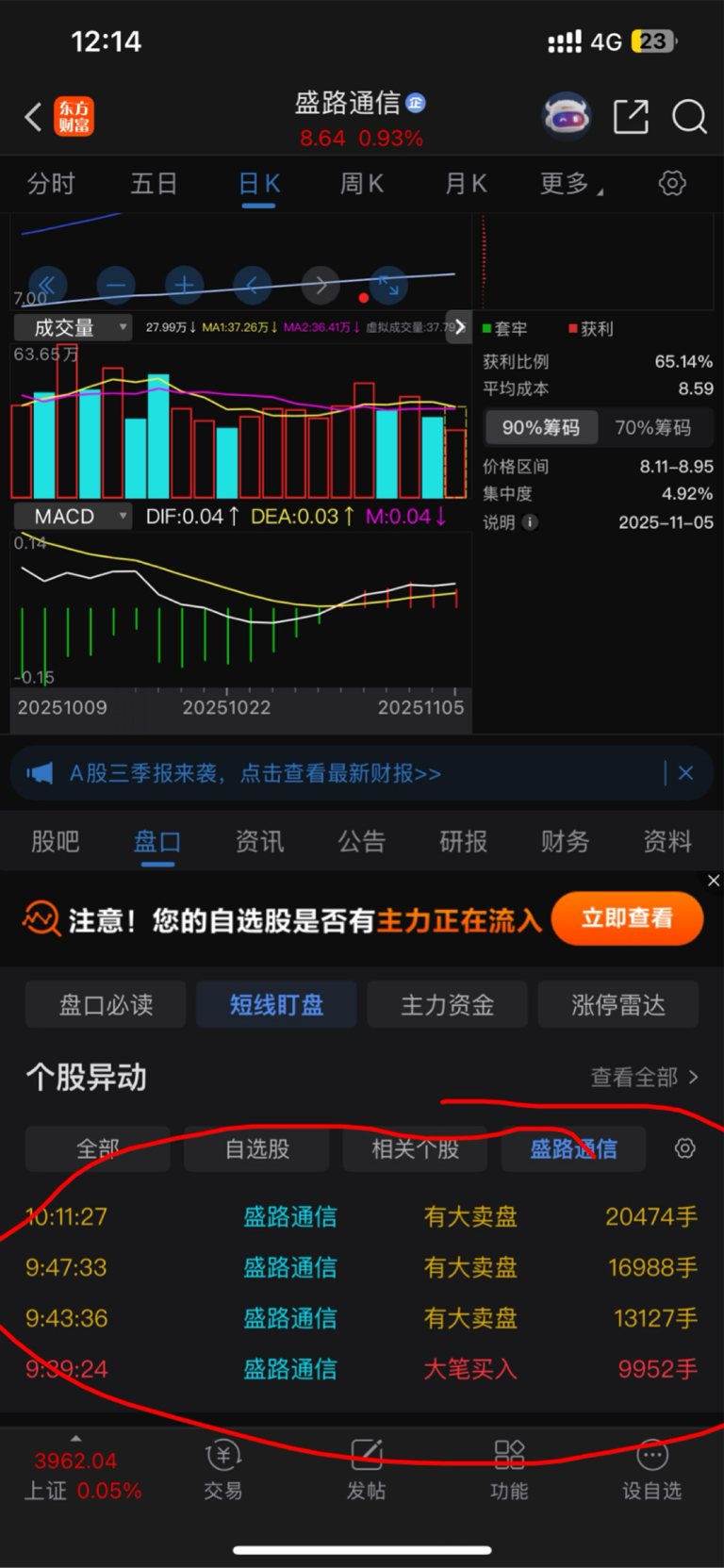 $盛路通信(SZ002446)$ 一个大单打上去,就有几万手给你按下来.天天如此.太难了