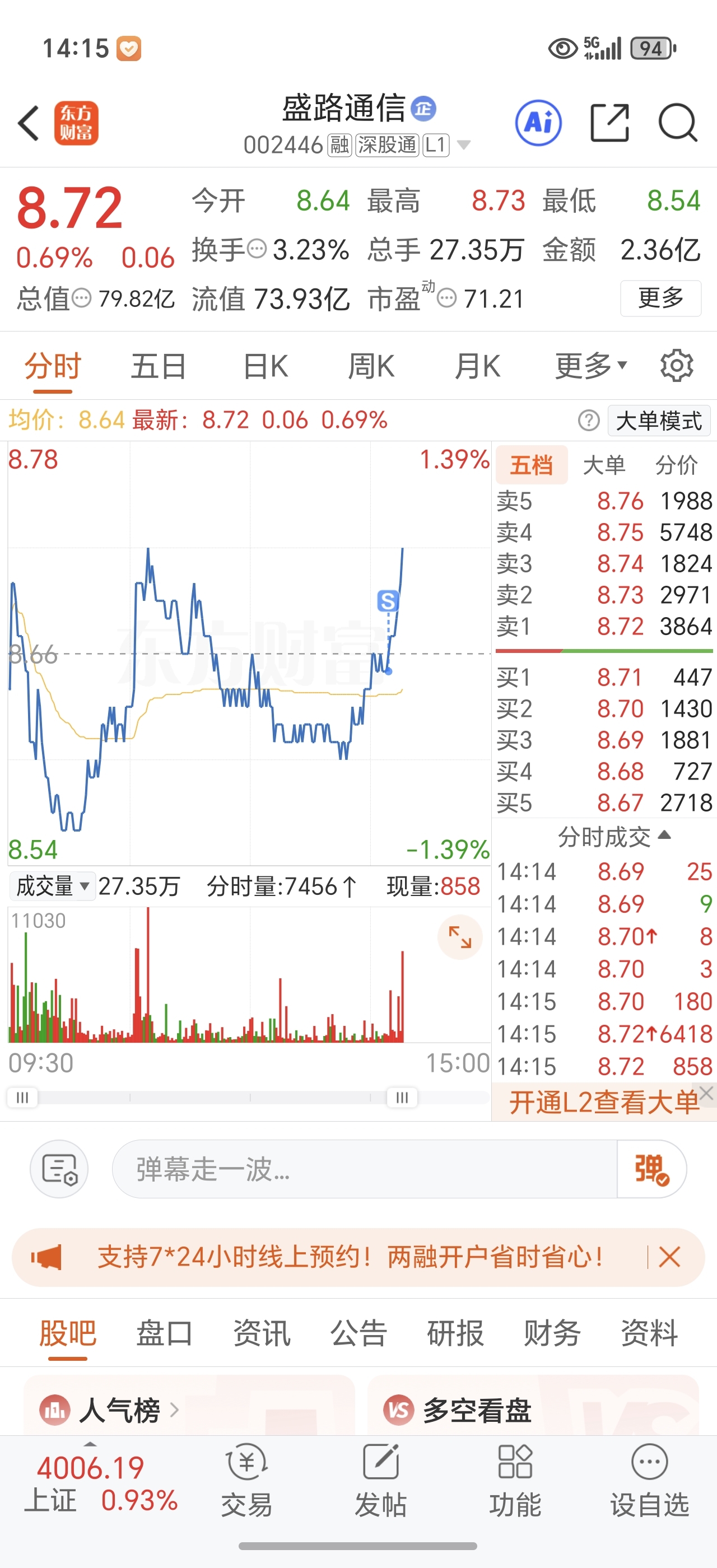 $盛路通信(SZ002446)$ 我刚卖,就涨