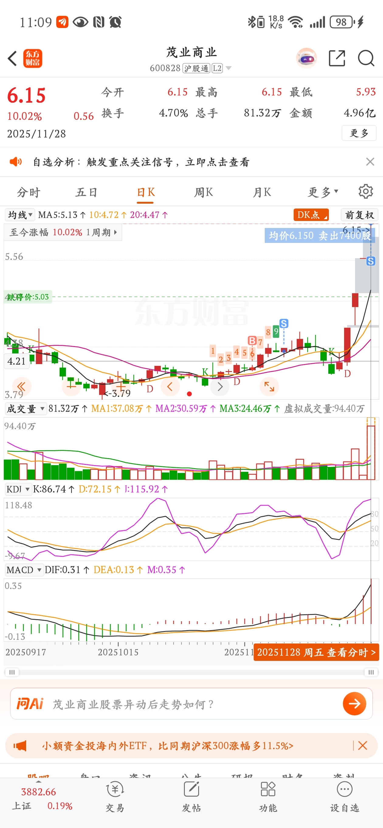 今天出了茂业商业进这股,千万别把我套住了,卖了就后悔了