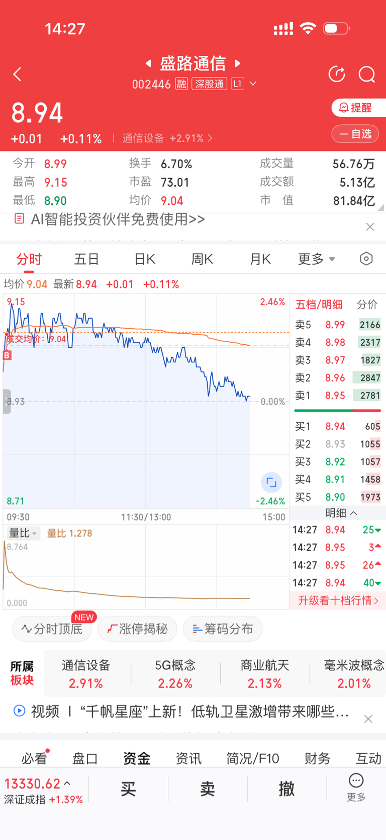 $盛路通信(SZ002446)$ 对不起大家,怪我买崩了