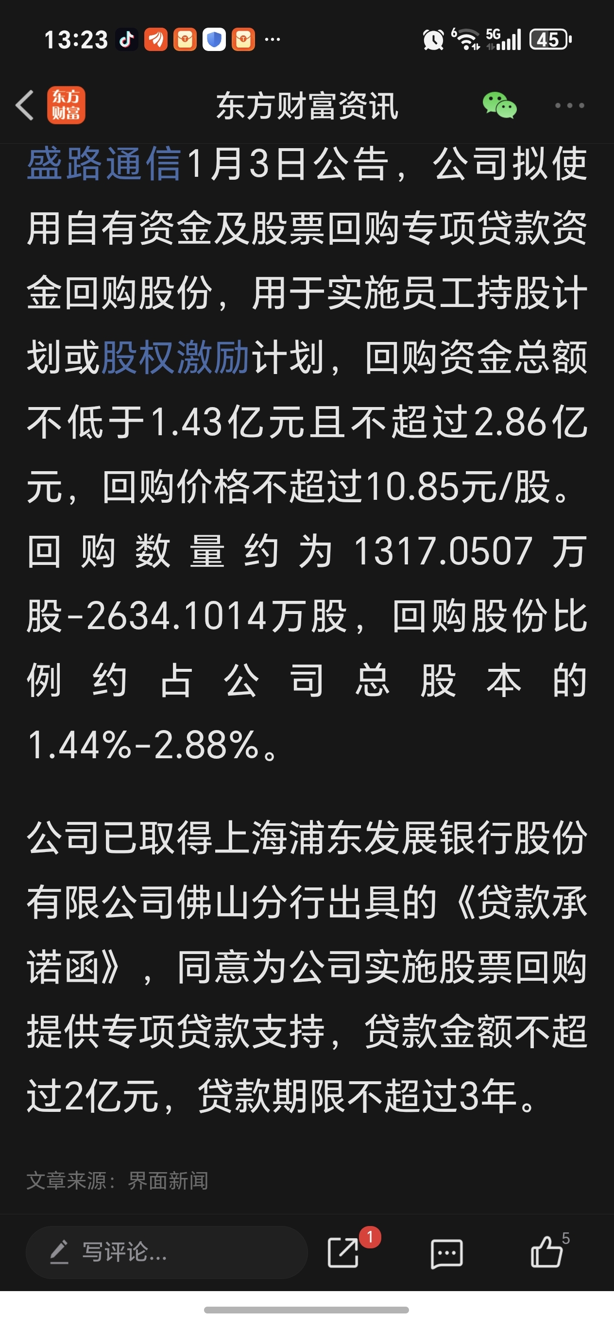 $盛路通信(SZ002446)$ 贷款都手快一年了,还不继续回购,无语,是不是银行这边没打款呀?