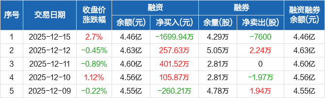 盛路通信:融资净偿还1699.94万元,融资余额4.46亿元(12-15)