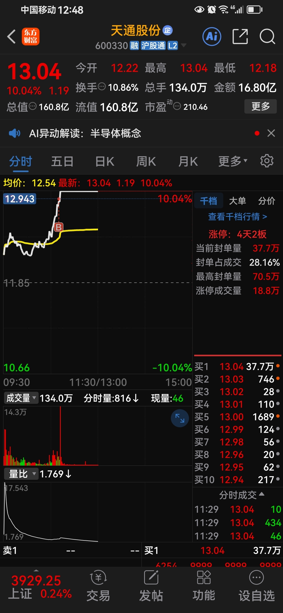 这两天打板真背啊万润天通,两天都吃小面今天博云新材没有排上,快速撤单打板盛路通信