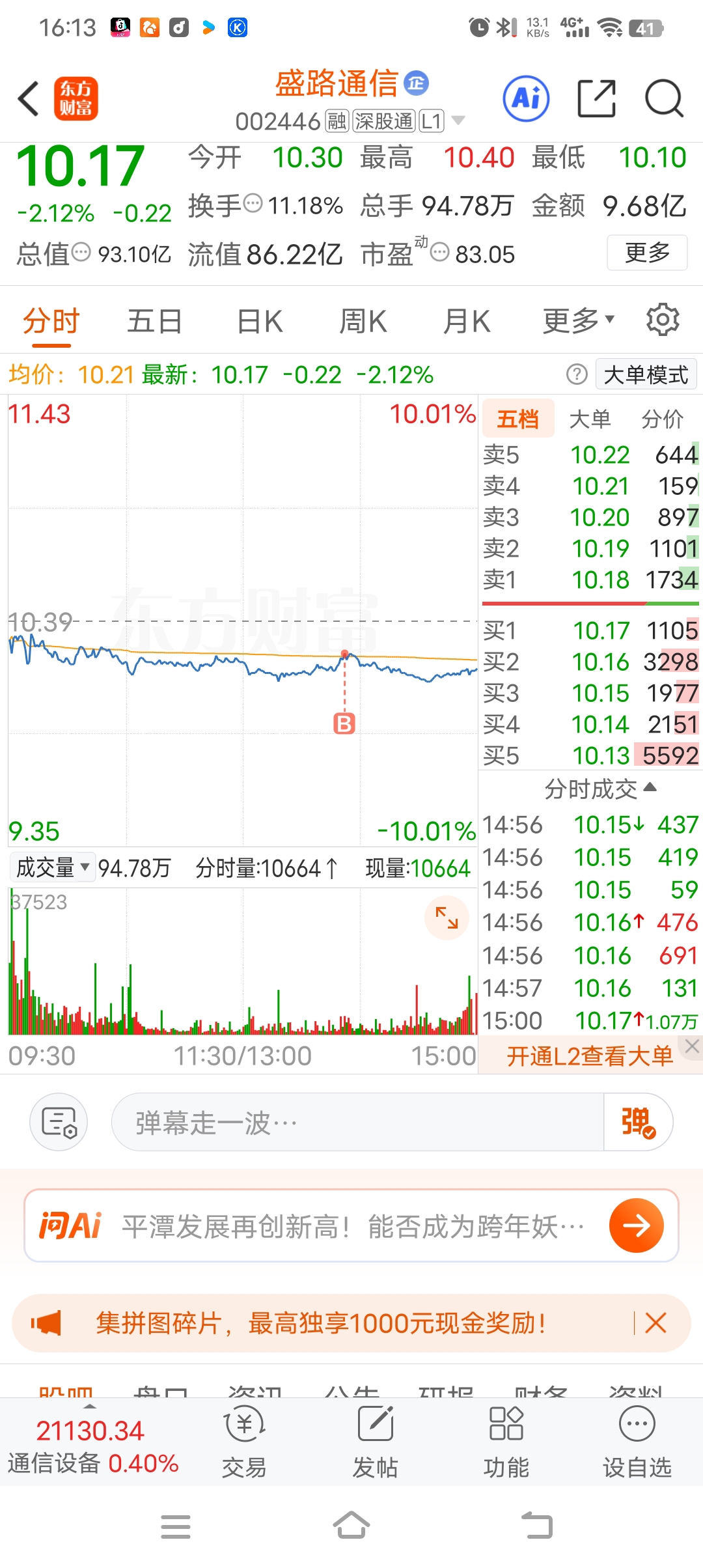 $盛路通信(SZ002446)$ 一下手就是小高点,忒恶心