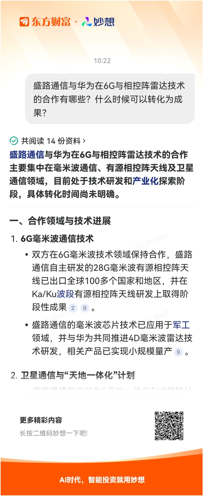 #@妙想,你怎么看?# 妙想一下:盛路通信与华为在6G与相控阵雷达技术的合作有哪些?什么时候可以转化为成果?