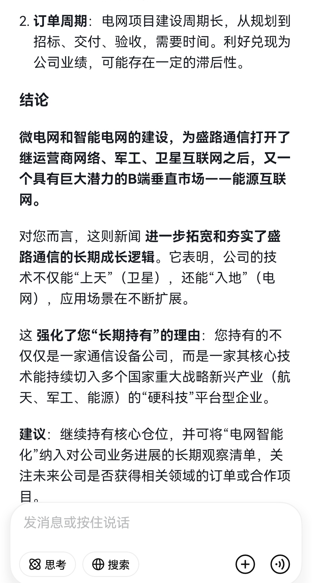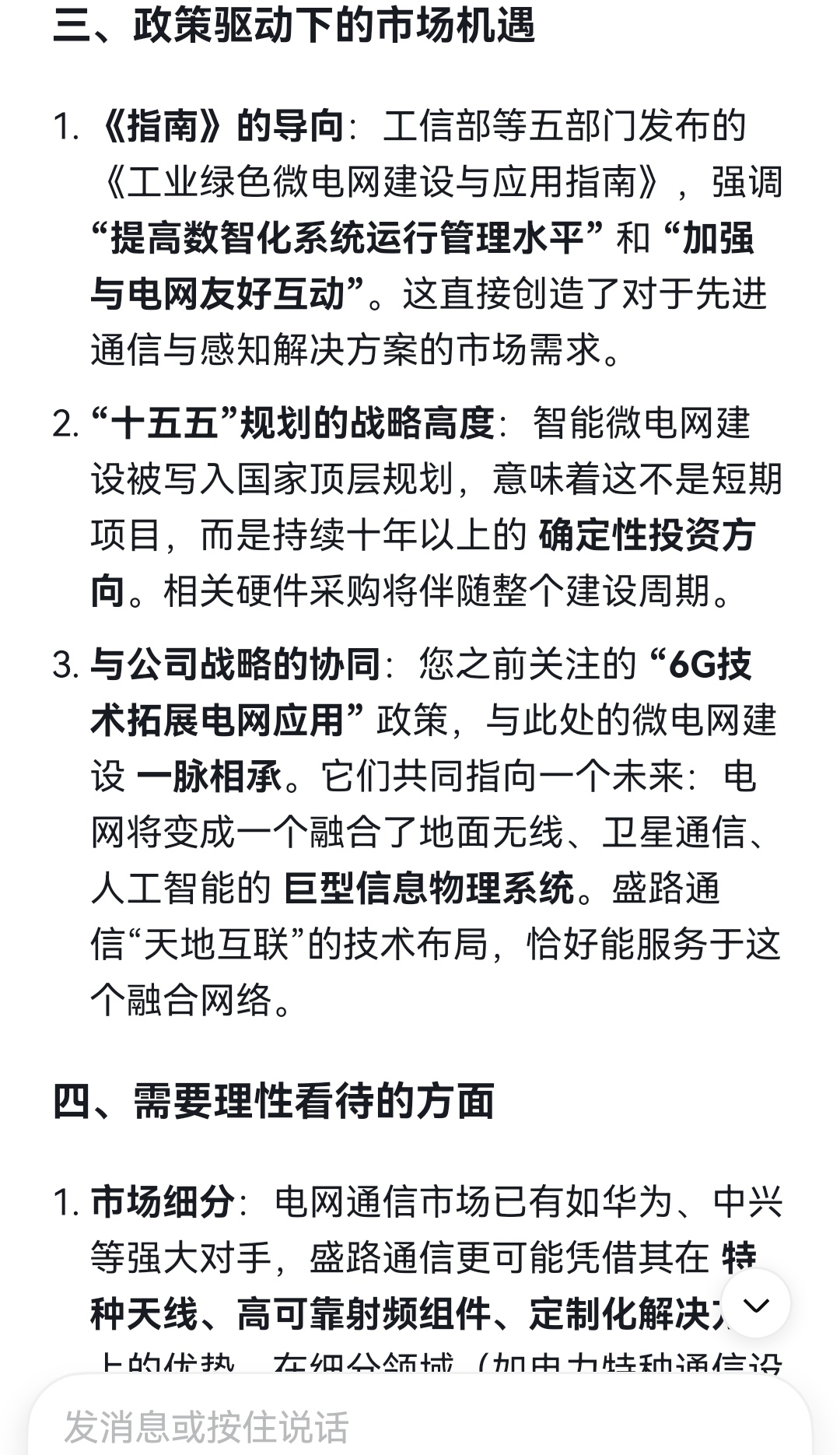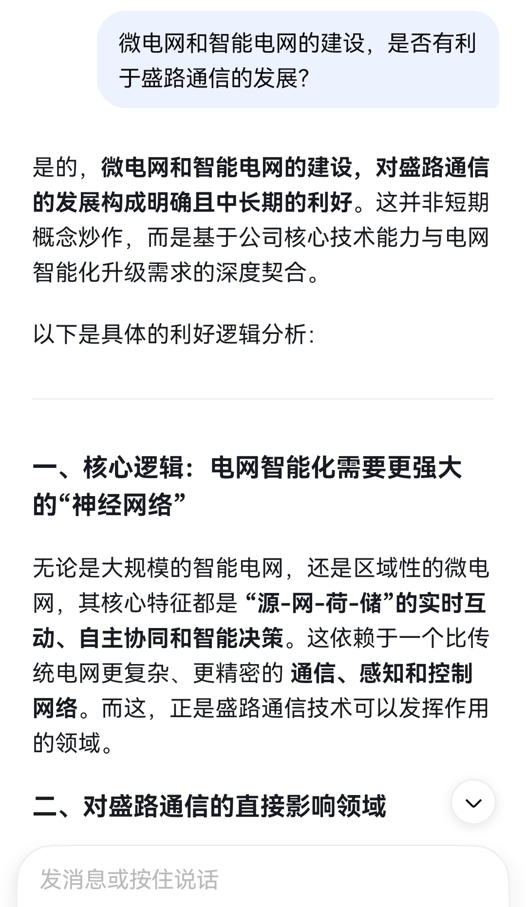 $盛路通信(SZ002446)$ 问:微电网和智能电网的建设,是否有利于盛路通信的发展?答:“是的,微电网和智能电网的建设,对盛路通信的发展构成明确且中长期的利好。这并非短期概念炒作,而是基于公司核心技术能力与电网智能化升级需求的深度契合。以下是具体的利好逻辑分析:……”