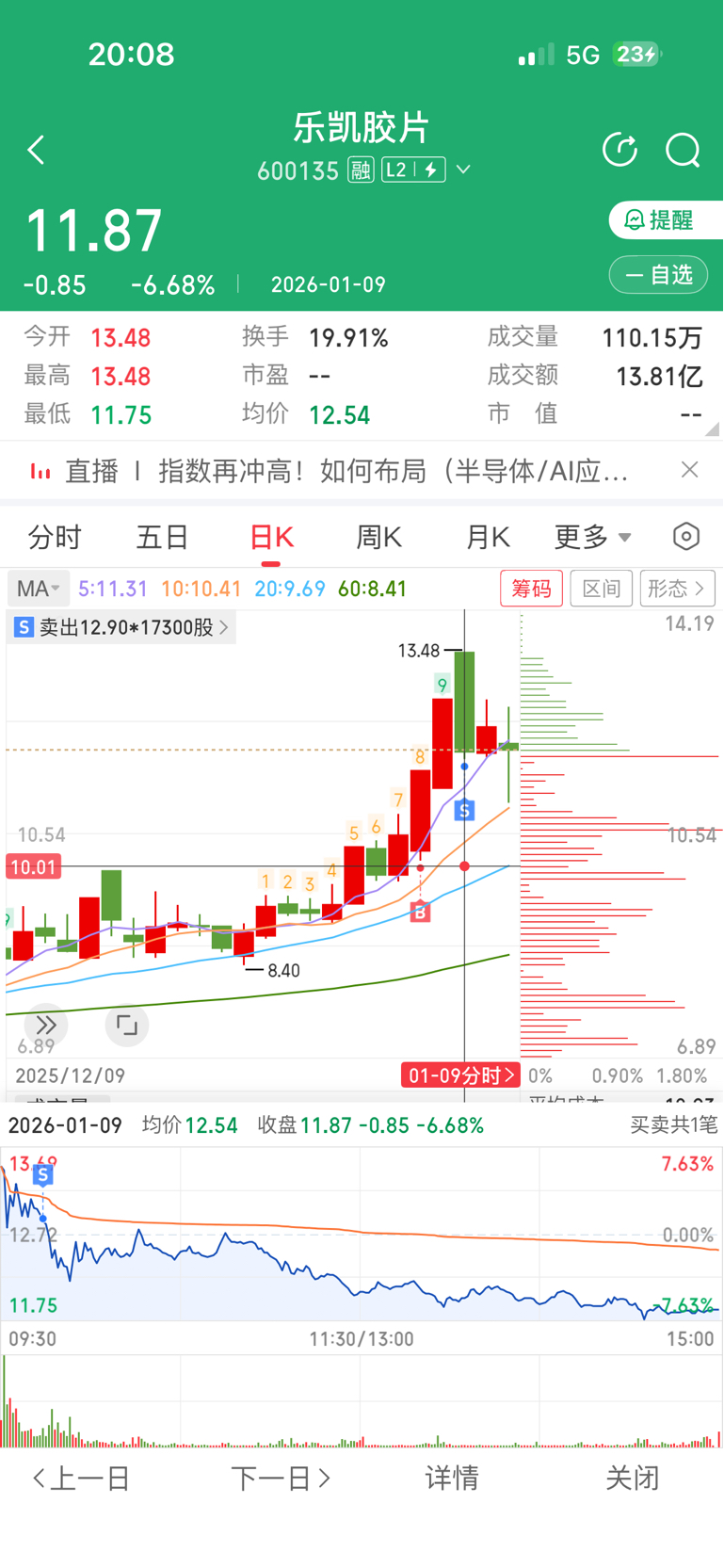 给你们看一看,这个股后面会怎么样,我的判断是很准确的,所以乐凯胶片我才能避免被a
