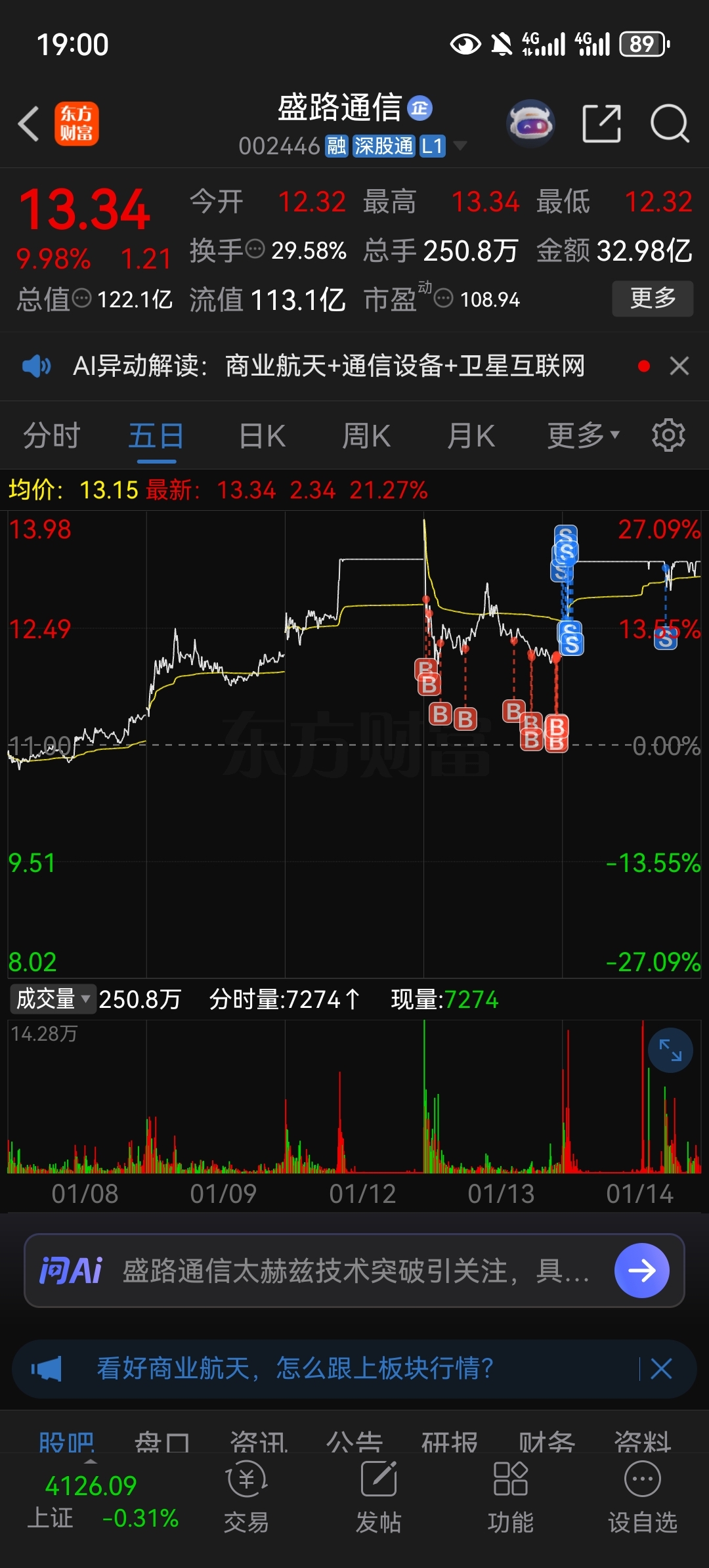 $盛路通信(SZ002446)$ 跑了,昨天买了一天,留下的发财