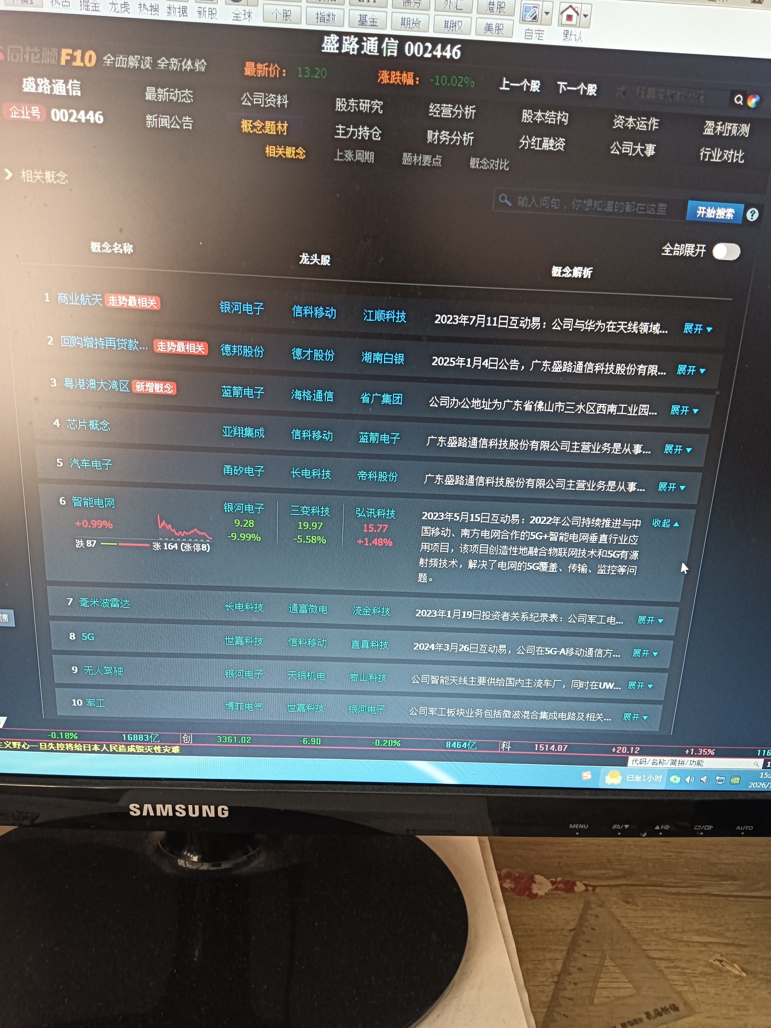 盛路概念真的非常牛,智能电网,芯片概念都有。商业航天,无人驾驶,卫星互联网,6G