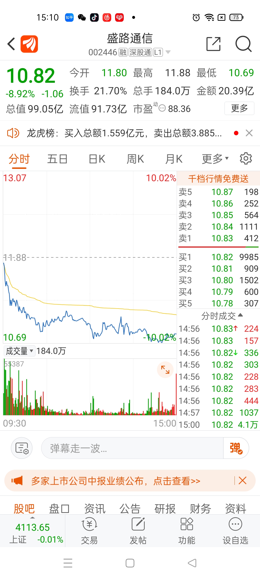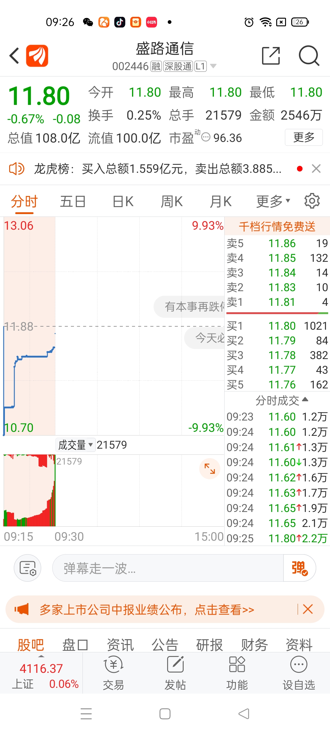 $盛路通信(SZ002446)$ 尾盘符合早上的竞价走势,在14:30有试盘抛压还是严重,所以这个股还是走跌后面需要磨盘震荡,需要清理筹码,目前看不是进场的时机,需要缩量的小阳十字星才能进来。到底是哪个在抛?