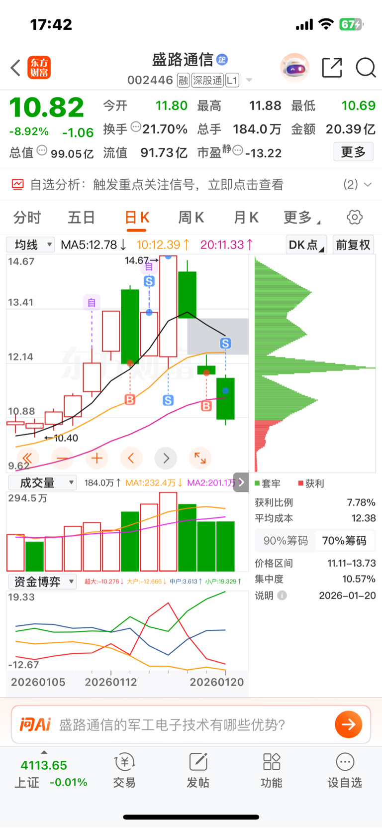 $盛路通信(SZ002446)$ 抄底失败