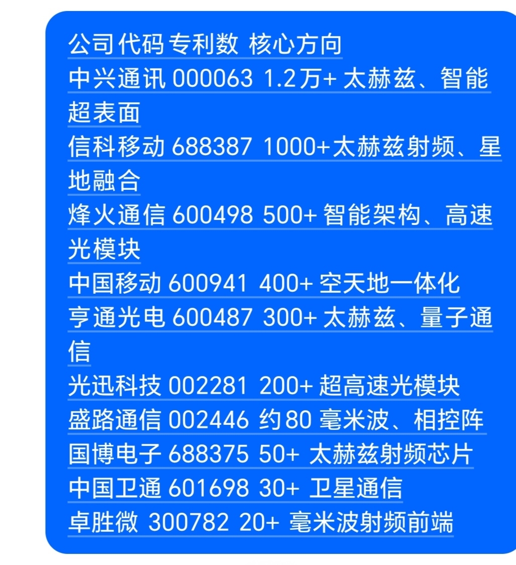 $盛路通信(SZ002446)$ 国内拥有6G专利排名靠前的上市公司 除了盛路通信 其他的市值400亿以上,只有盛路通信目前处于股价低位!!!