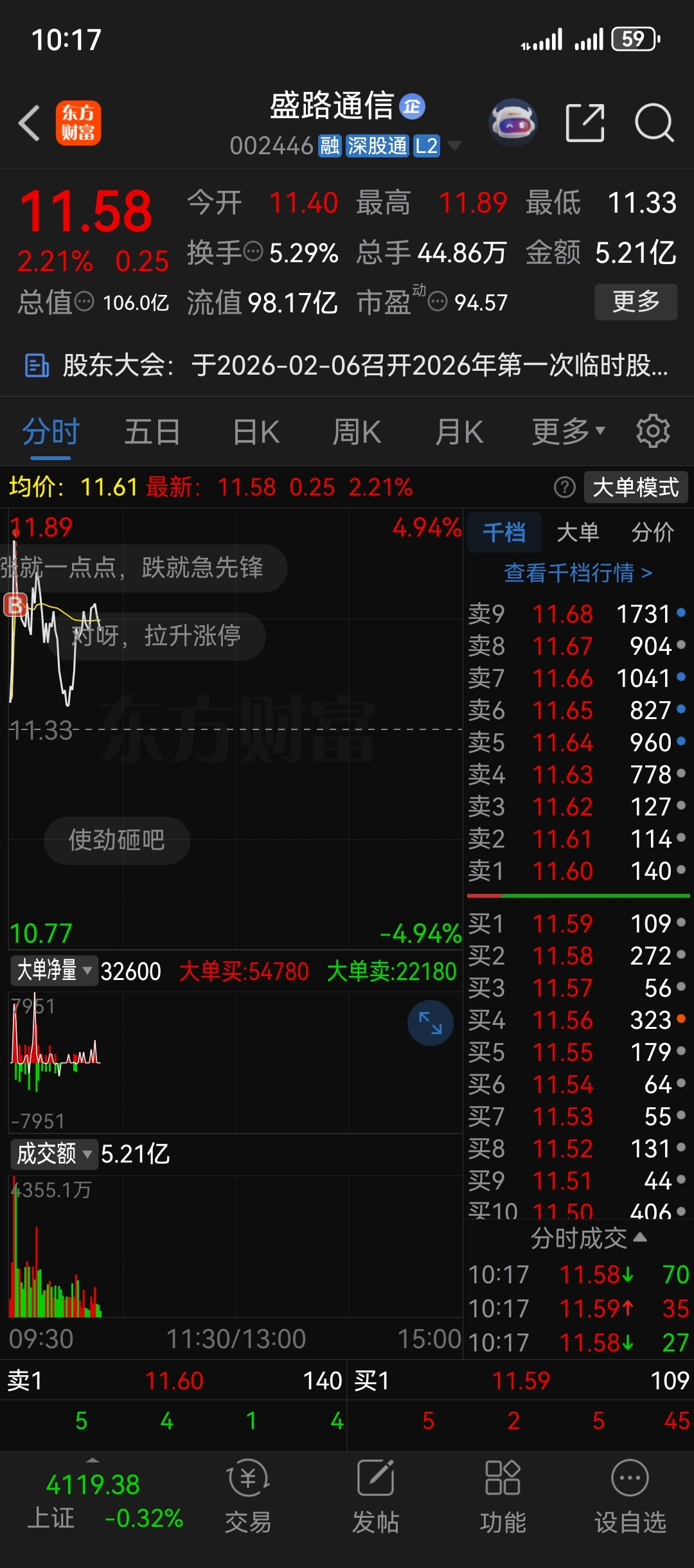 $盛路通信(SZ002446)$ 涨点儿大家就知足吧,就这都是倾其所有拉的。