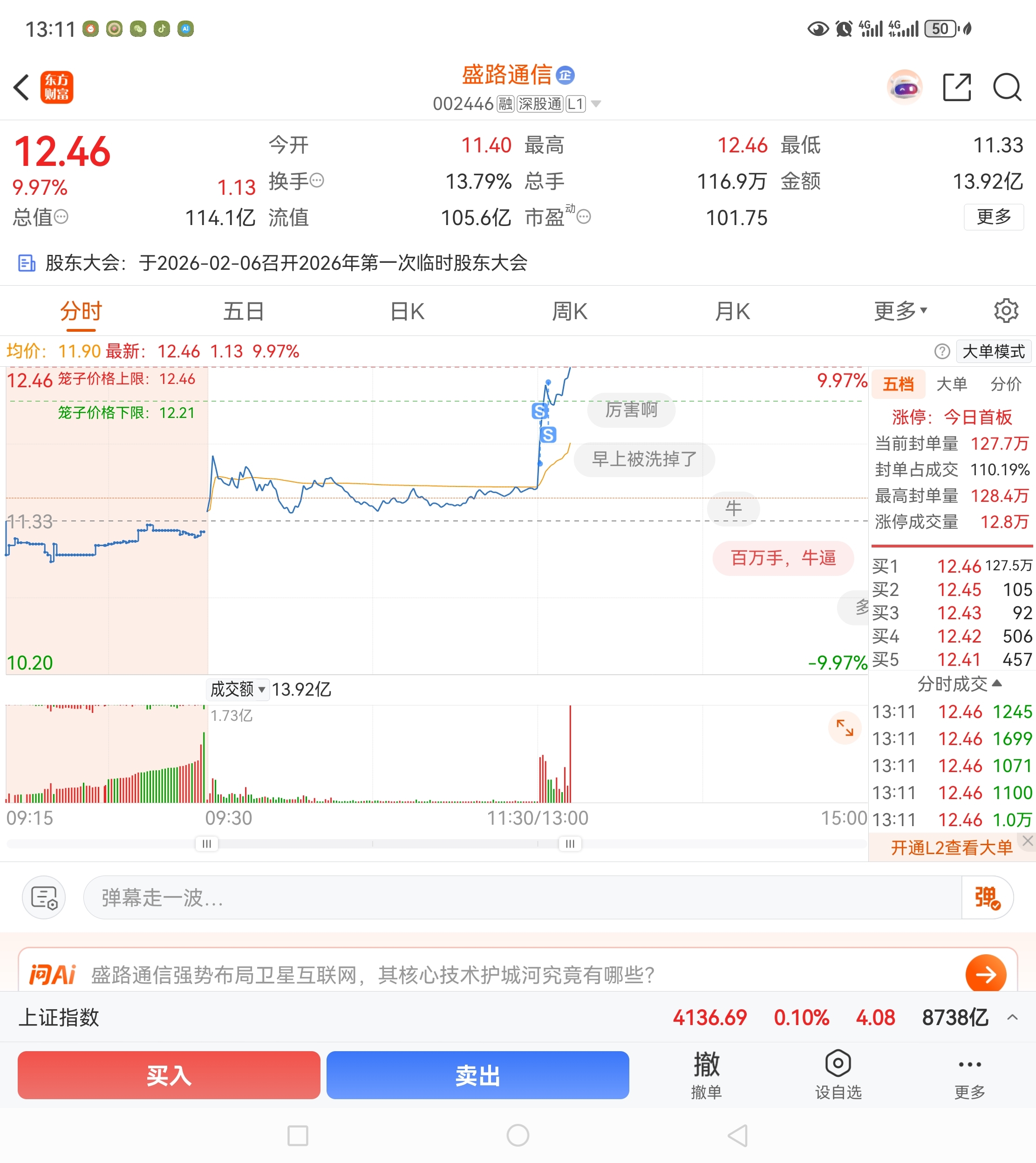 $盛路通信(SZ002446)$ 昨天加的底仓今天全出,持仓过年