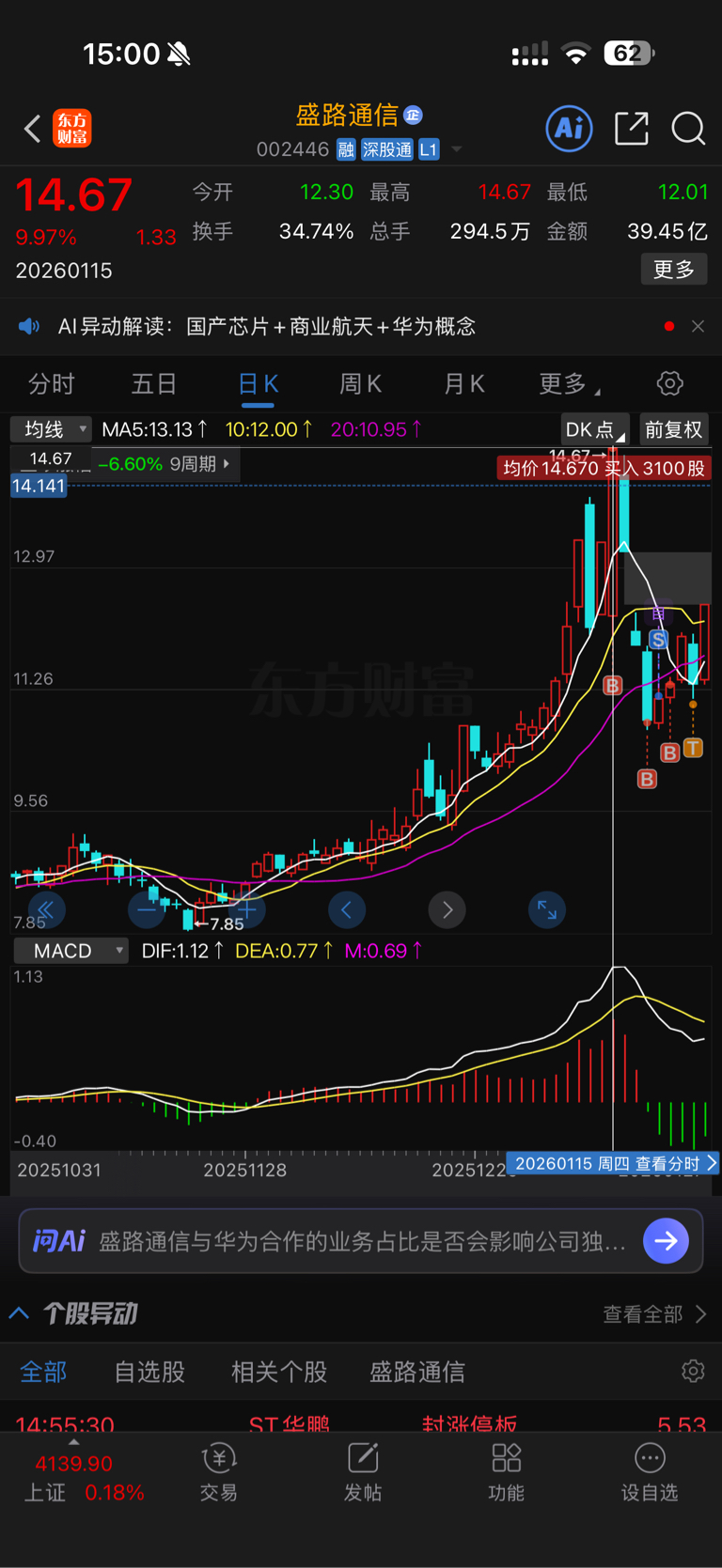 $盛路通信(SZ002446)$ 打板进来的,还有机会吗