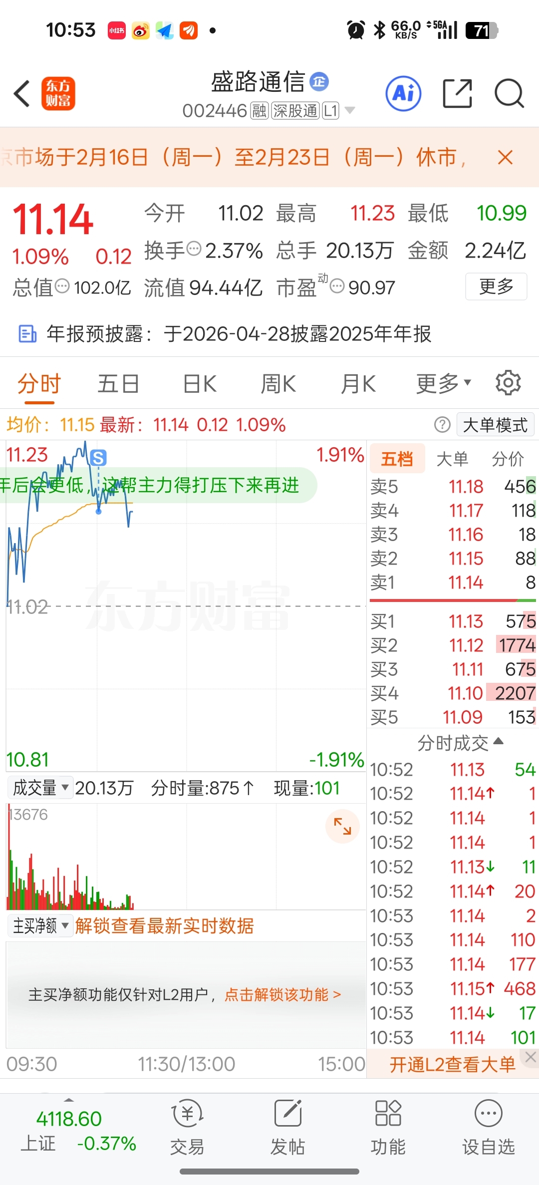 $盛路通信(SZ002446)$ 下午尾盘再接回来