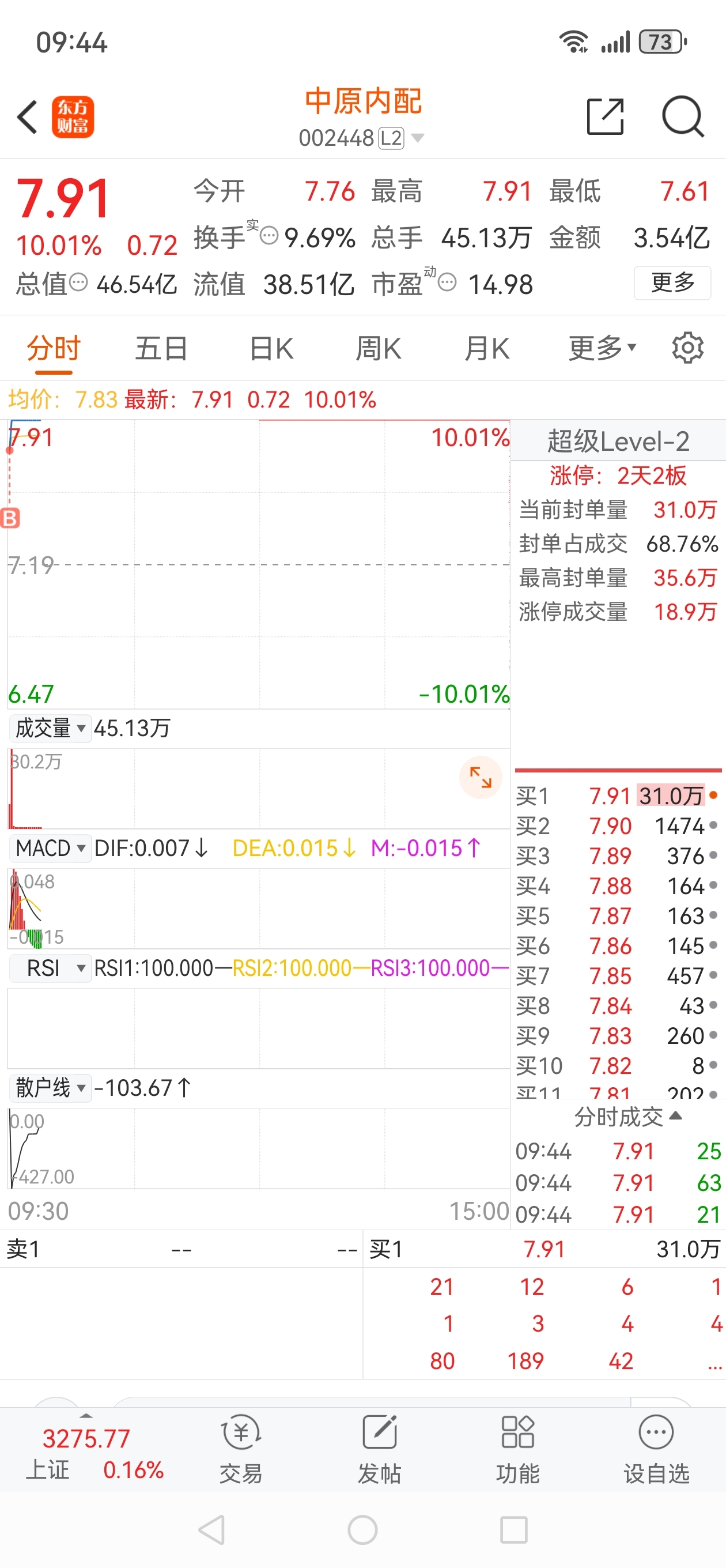 $中原内配(SZ002448)$ 可惜了,正在换衣服,手速上来不及,只能把剩余仓位打满。