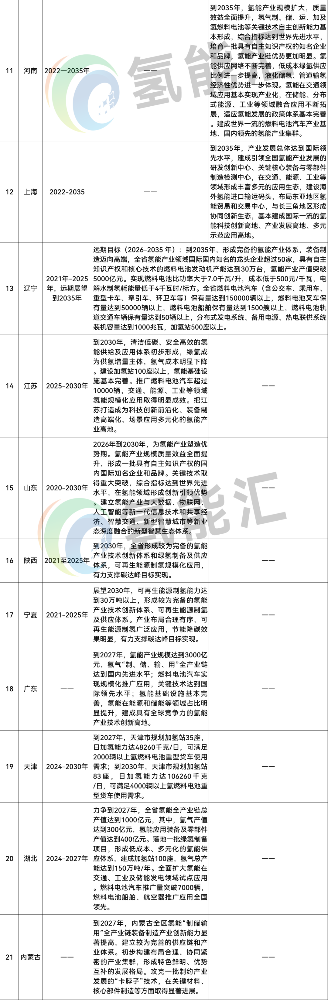 河南省人民政府办公厅印发《河南省氢能产业发展中长期规划(2022—2035年)》和《郑汴洛濮氢走廊规划建设工作方案》。《规划》明确了发展目标,到2025年,河南省氢能产业关键技术和设备制造领域取得突破,产业链相关企业达到100家以上,氢能产业总产值突破1000亿元。推广示范各类氢燃料电池汽车力争突破5000辆,氢气终端售价降至30元/公斤以下,建成3-5个绿氢示范项目。郑汴洛濮氢走廊基本建成,郑州燃料电池汽车城市群示范应用取得明显成效,初步建成氢能国家级先进制造业集群。方案提出,到2025年,突破氢能产业链关键零部件及系统集成核心技术,引进和培育产业链相关企业超过100家,打造国内领先的氢燃料电池整车及核心零部件生产企业2—3家