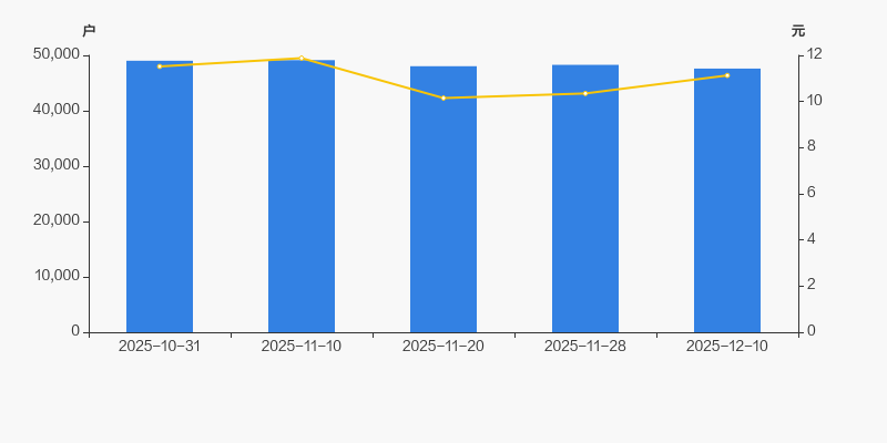 截至2025年12月10日,公司最新总股本为5.88亿股,其中流通股本为4.56亿股。户均持有流通股数量由上期的9433股上升至9567股,户均流通市值10.65万元。