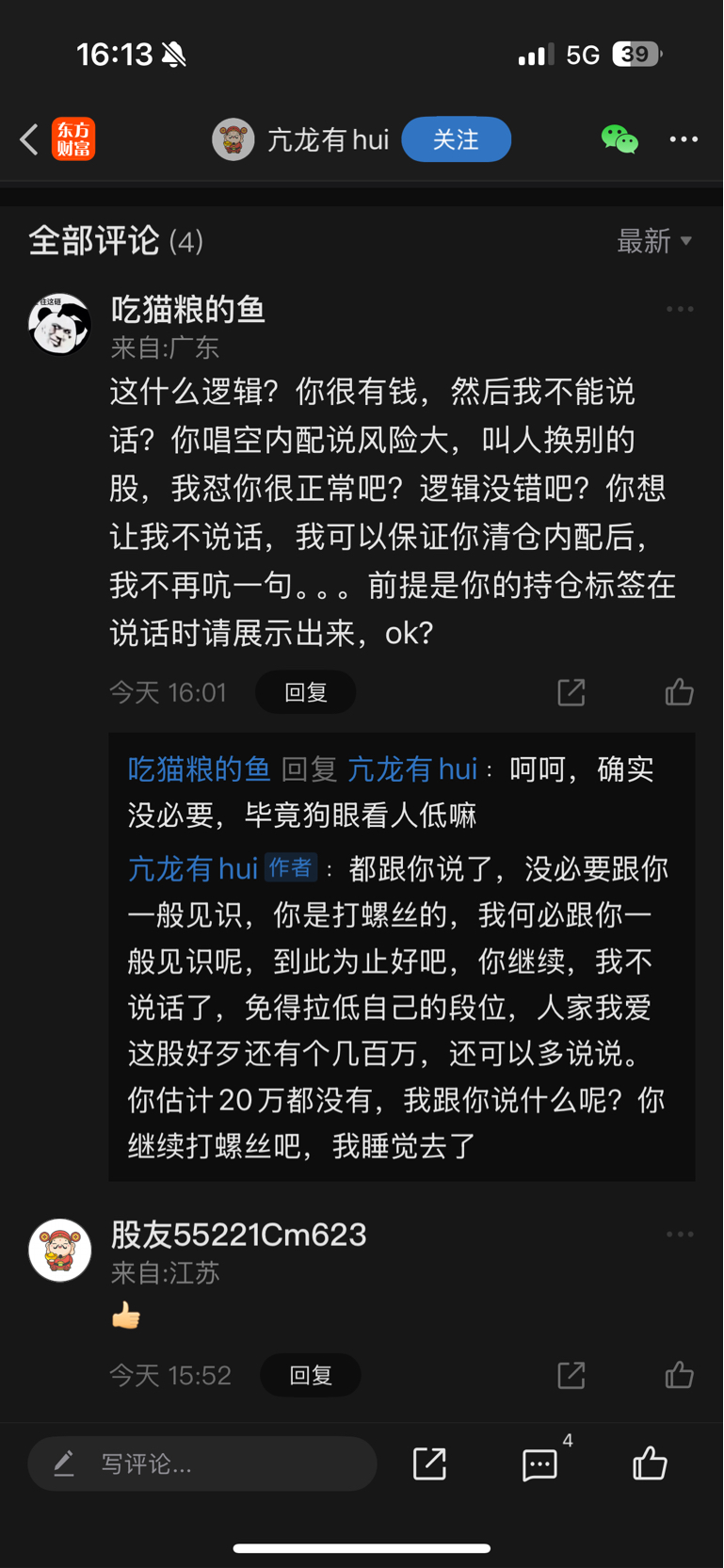 温馨提示: 1.根据《证券法》规定,禁止编造、传播虚假信息或者误导性信息,扰乱证券市场;2.用户在本社区发表的所有资料、言论等仅代表个人观点,与本网站立场无关,不对您构成任何投资建议。用户应基于自己的独立判断,自行决定证券投资并承担相应风险。《东方财富社区管理规定》