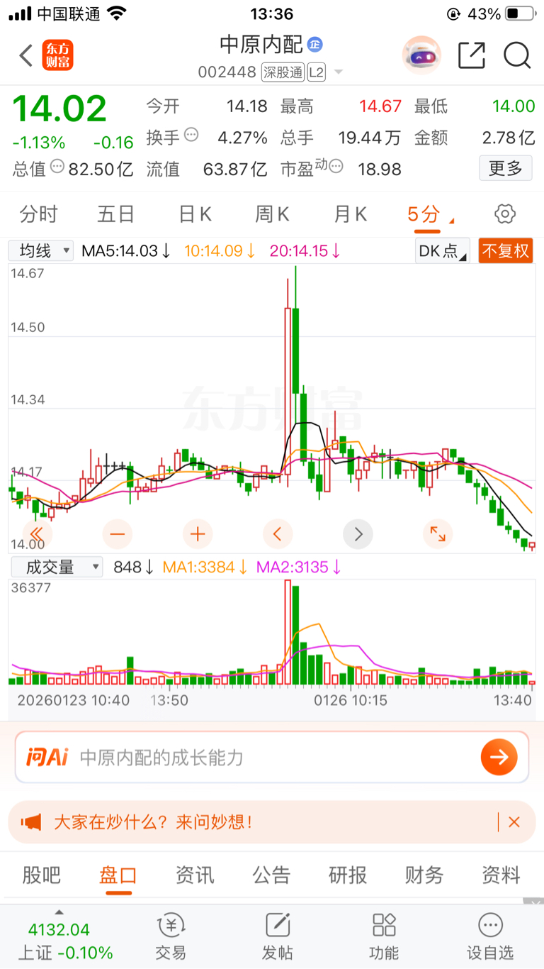$中原内配(SZ002448)$ 没有筹码砸了吗?