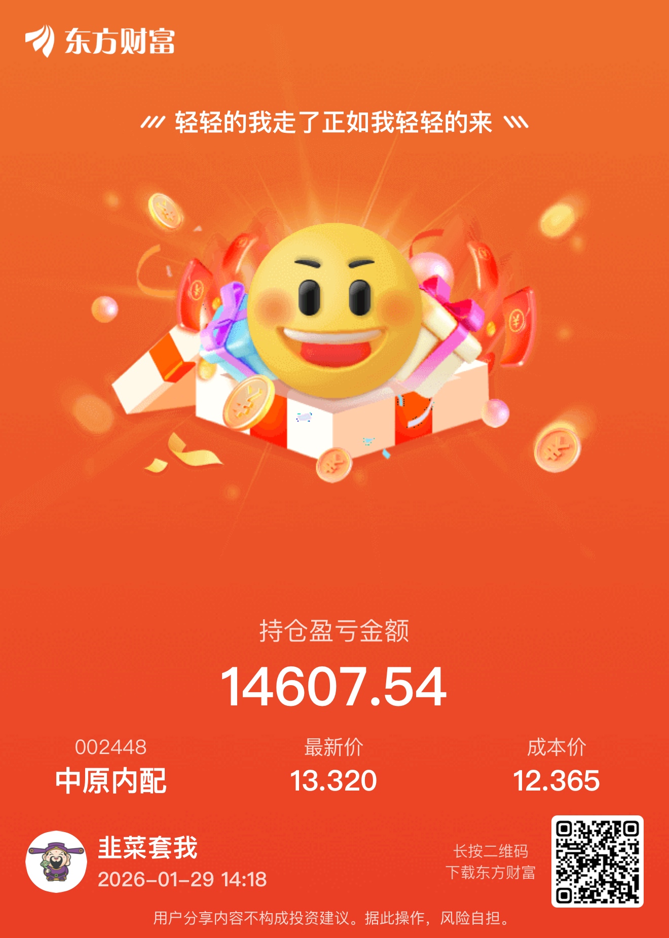 $中原内配(SZ002448)$ 跌到12.36我满仓