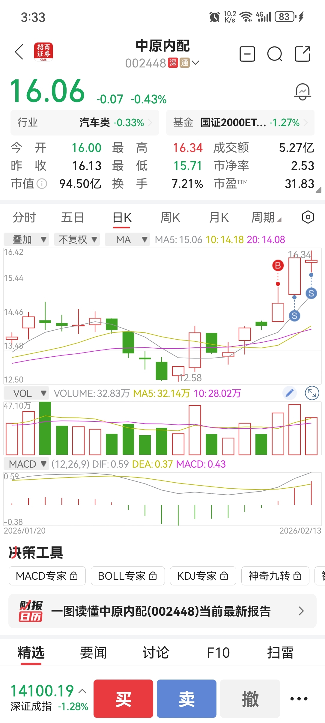 $中原内配(SZ002448)$ 我走了,16.21底仓也卖光了,再见。