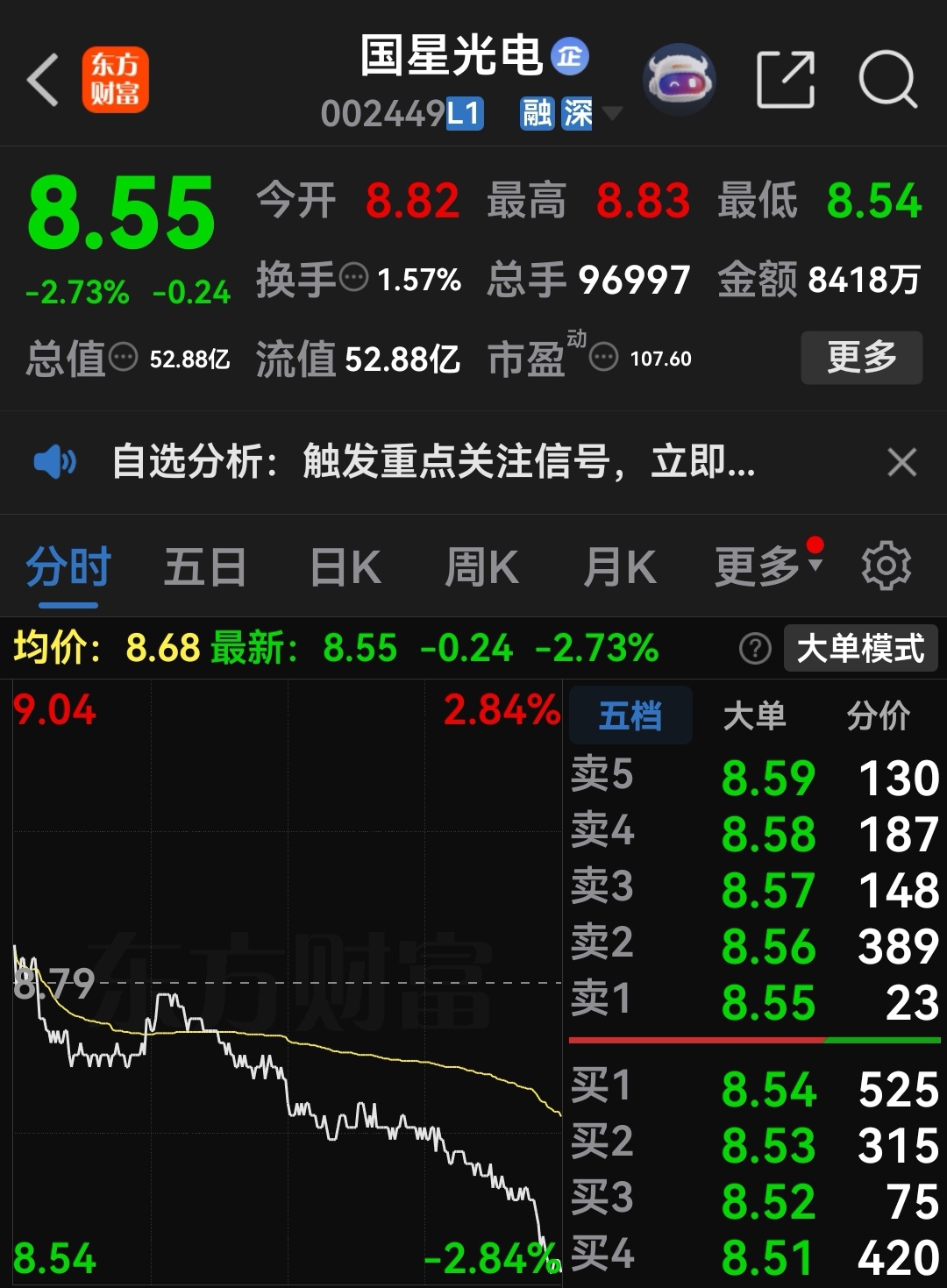 以8.58挂单加仓买进国星光电,这个在这么好的行情中没有见到抬头的东西我是不事买