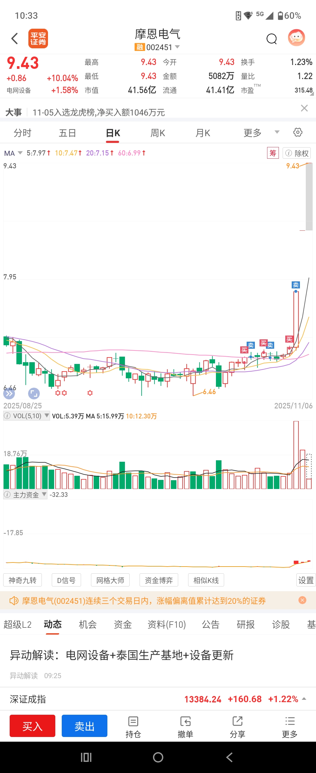 $摩恩电气(SZ002451)$ 全仓梭哈,一个板就给洗走了,心痛啊!