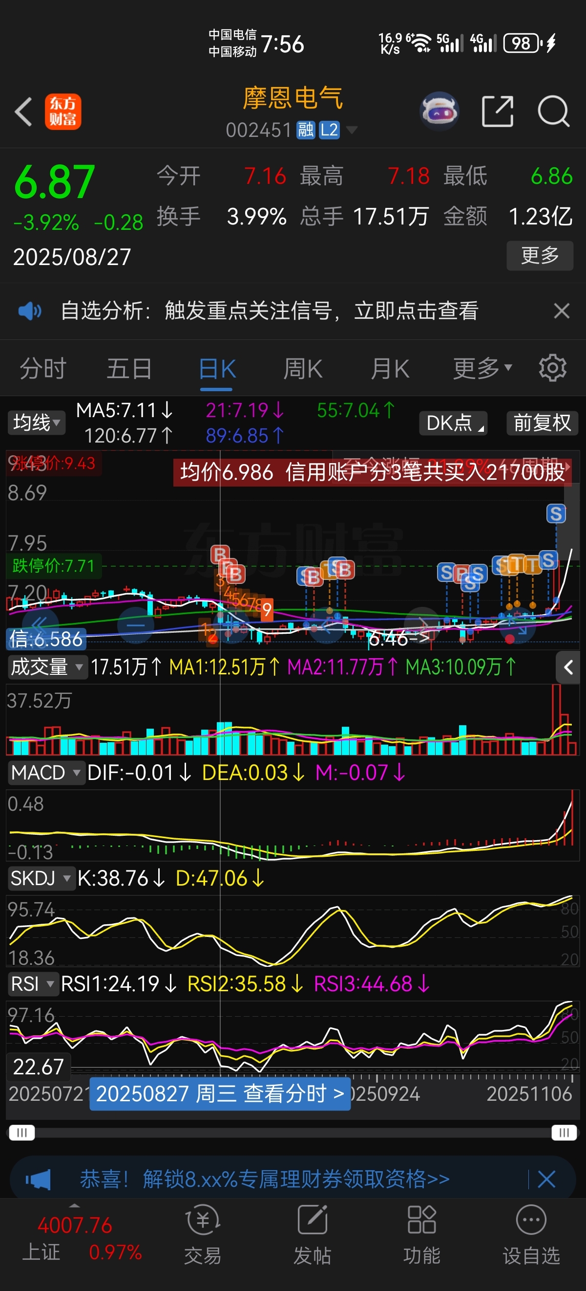 $摩恩电气(SZ002451)$ 我从8月27号买入第一笔开始一路做T,终于坚持下来了