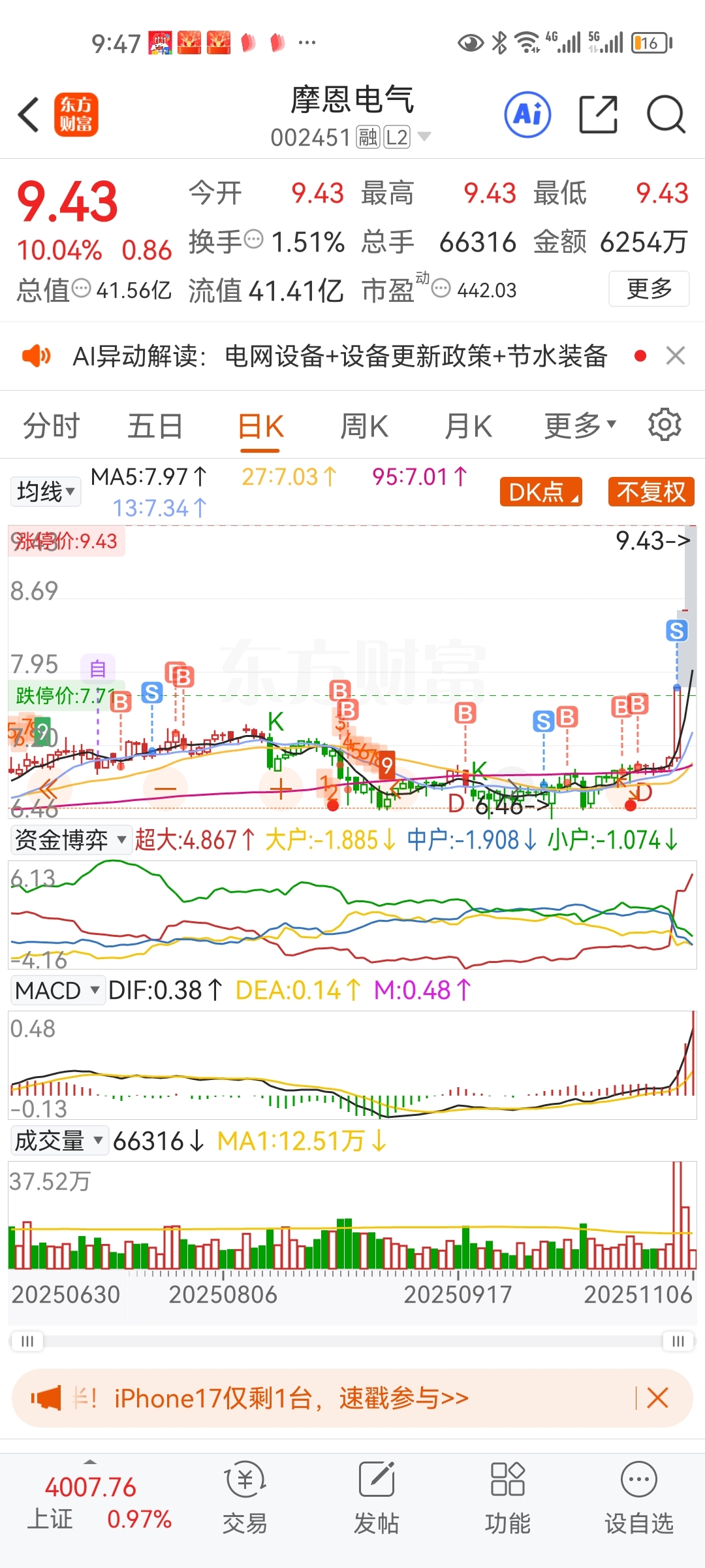 $摩恩电气(SZ002451)$ 明天竞价就砸
